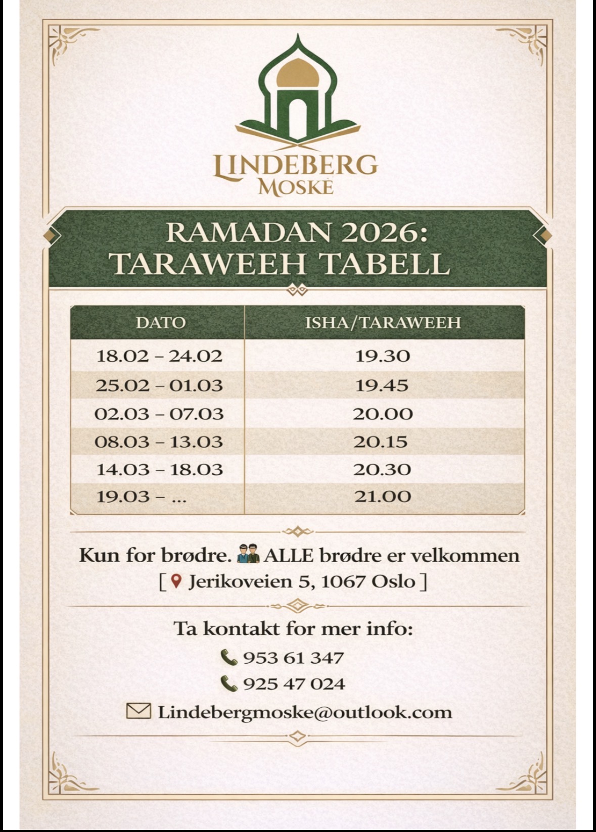 Våre bønnetider er laget basert på mening av flertall av lærde fra de største Islamske Institutter.